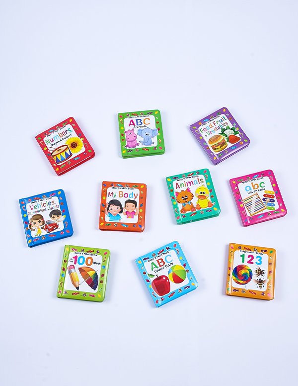 A fun and safe learning set of 10 compact board books, covering 16 essential topics for kids aged 6 months to 3 years.